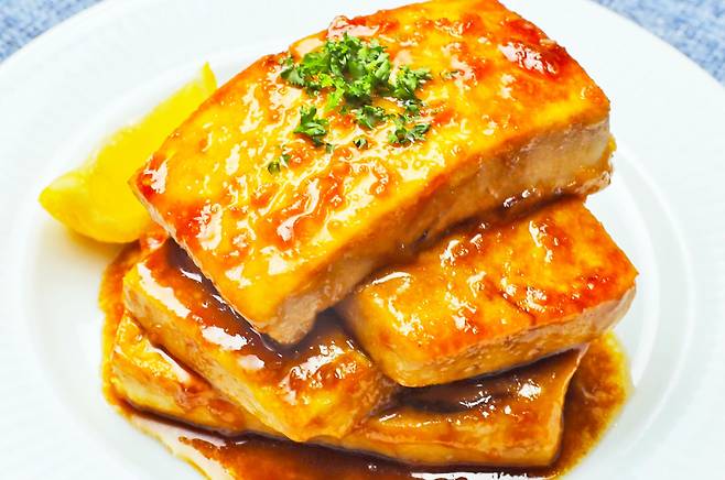 ✅ 두부구이 – 팬에 구워 간장 소스를 곁들여 먹으면 단백질 보충 완료! 🍽️