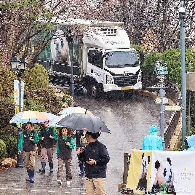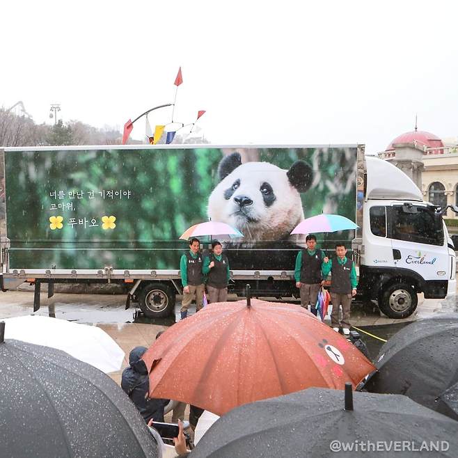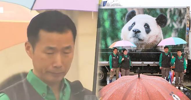 하늘도 함께 우는 것처럼 비가 추적추적 내리는 4월 3일, 에버랜드 판다월드에는 푸바오를 배웅하기 위해 많은 사람들이 모였습니다.