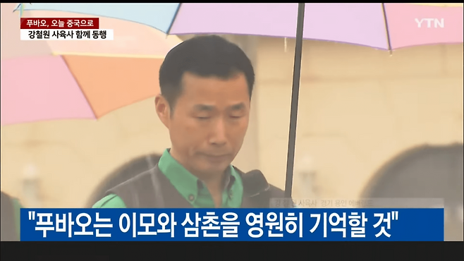 "여러분 이제 푸바오가 떠날 텐데요, 푸바오를 오래오래 기억해주세요. 푸바오도 할부지도 여러분을 잊지 않겠습니다. 그리고 여러분, 너무 많이 울지 말아요. 푸바오 잘 데려다주고 올게요. 모두 감사드립니다."