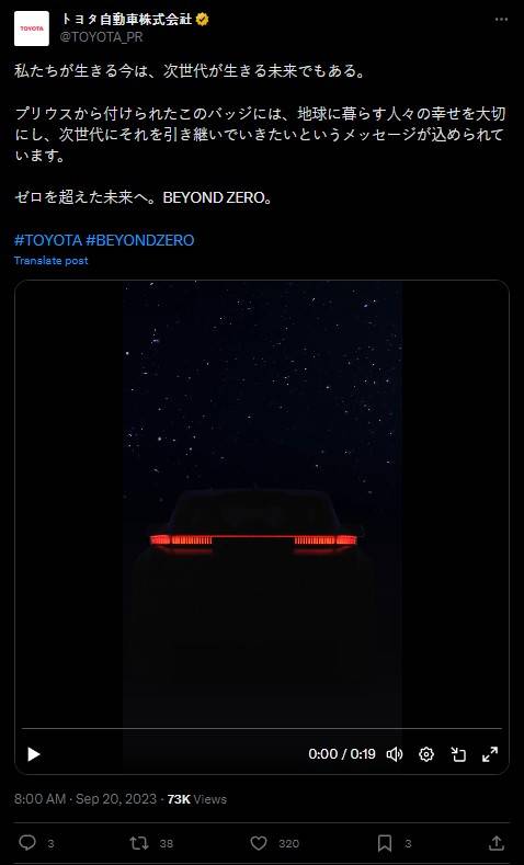 토요타가 20일 새로운 배지와 함께 bZ 컴팩트 SUV의 티저를 공개했다. 토요타는 X(前 트위터) 계정을 통해 차세대 전기 크로스오버 후면에 파란색 원형 배지를 부착한 새 로고를 선보이면서 “지구에 사는 사람들의 행복을 소중히 여긴다는 것을 보여줄 계획"이라고 설명했다.