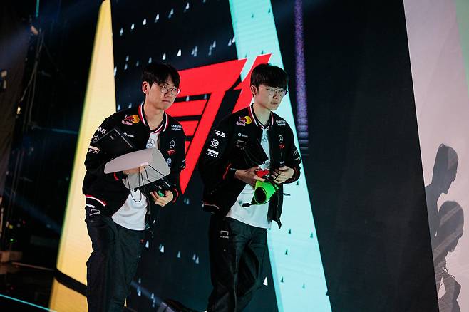 T1이 20일 사우디아라비아 리야드에서 펼쳐진 2025 e스포츠 월드컵 LoL 3위 결정전 1세트를 27분 만에 승리하며 1:0을 만들었다.