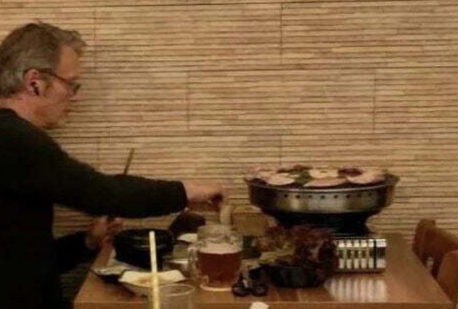 프라하의 한식 식당에서 삼겹살 혼밥하는 매즈 미켈슨 포착