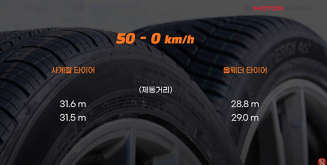 올시즌(사계절) vs 올웨더 제동거리 테스트