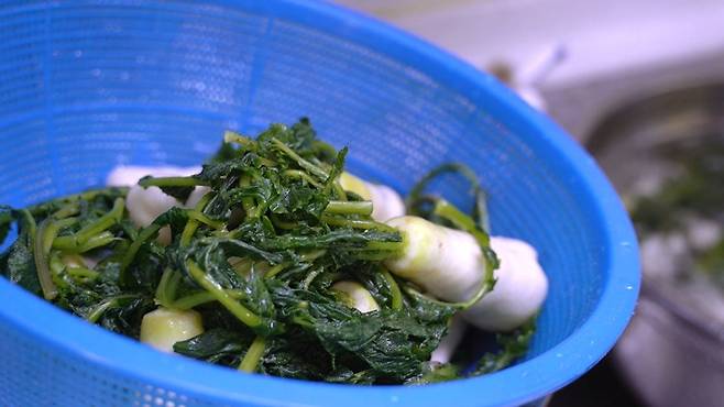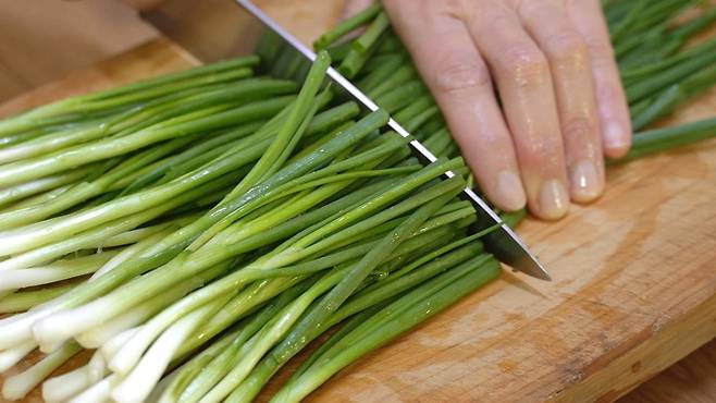 재료는 알타리 3단, 쪽파 한 줌, 양파(대) 1개 준비하세요.