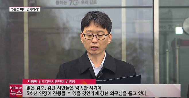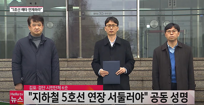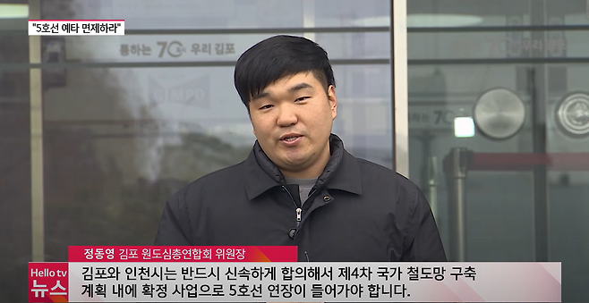 "김포와 인천시는 반드시 신속하게 합의해서 제4차 국가 철도망 구축 계획 내에 확정 사업으로 5호선 연장이 들어가야 합니다."
