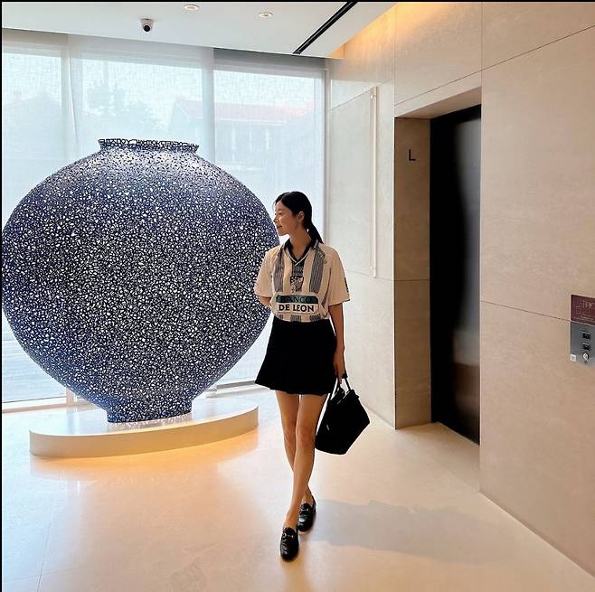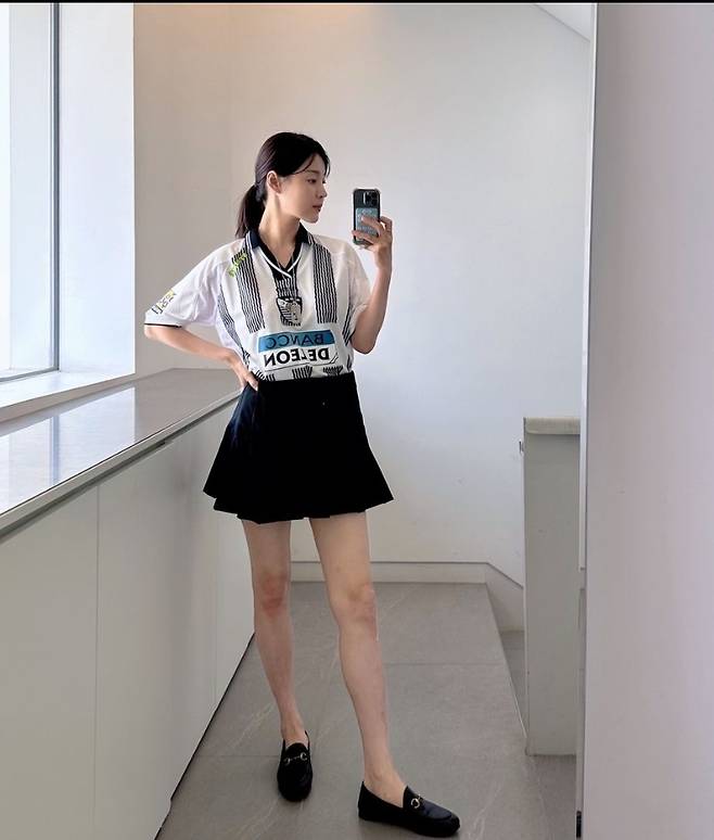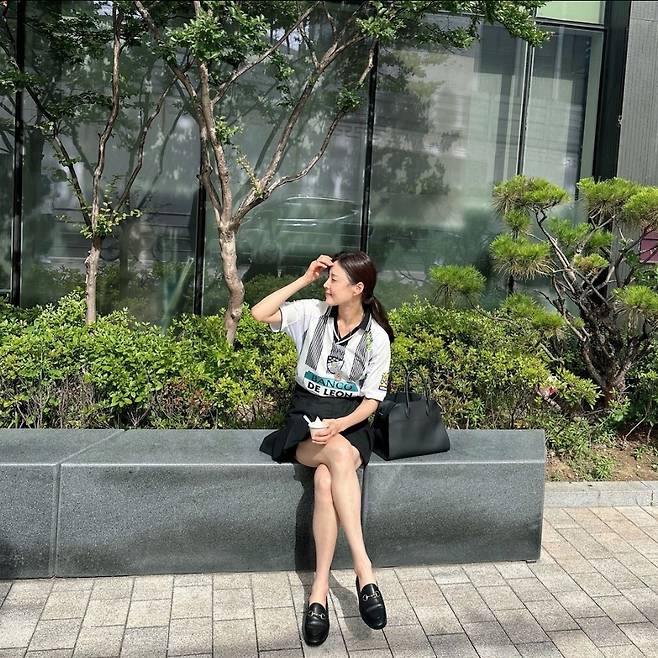 또, 한지혜는 블랙 미니스커트를 매치해 깔끔하고 우아한 느낌을 강조했습니다.