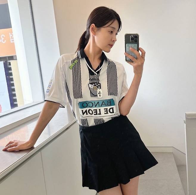 한지혜는 스트라이프 패턴이 돋보이는 블랙 앤 화이트 카라티를 착용해 스타일리시하고 활동적인 이미지를 돋보였습니다.