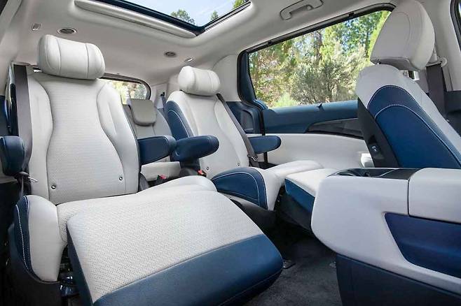 한편 9인승의 경우 3+3+3 구조를 지닌다. 특이한 점은 1열과 2열, 3열에 이르기까지 모두 3인이 앉을 수 있는 구조를 띈다는 것이다.