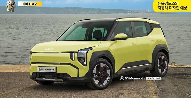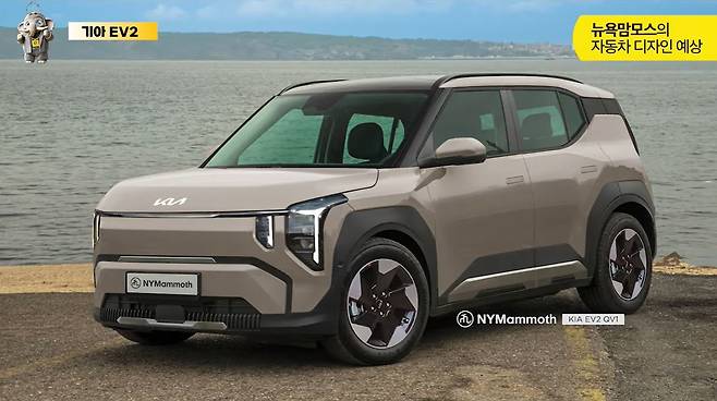 유튜브 채널 ‘뉴욕맘모스’가 예상한 EV2 외관은 기아의 최신 디자인 언어를 그대로 반영하고 있다. 특히 EV3와 흡사한 스타맵 시그니처 램프와 오퍼짓 유나이티드 철학이 담긴 기아의 패밀리룩을 적용할 것으로 보인다.