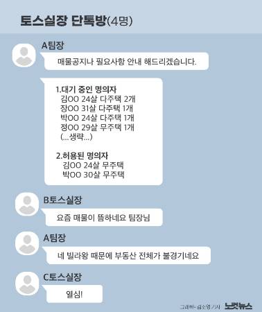 수도권에 위치한 A 부동산컨설팅 업체. 이준호(가명) 팀장의 목소리는 자신만만했다. 말끔한 정장을 갖춰 입은 그는 30대 초반의 나이에도 '토스실장'을 이미 여럿 거느리고 있다고 했다. 토스실장을 해보고 싶다는 기자에게 이 팀장은 "부동산 일을 해봤느냐"고 물은 뒤 몇 가지를 당부했다.