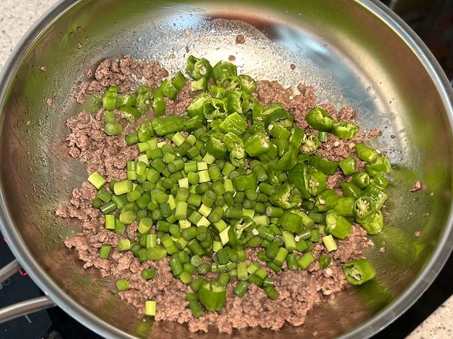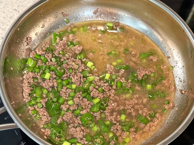 저는 소고기 다짐육 사용했는데요, 사실 돼지고기로 사용하셔도 무관하다 싶어요.