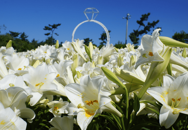 충남 태안의 안면도는 바닷가와 숲, 꽃이 어우러진 아름다운 자연 경관으로 유명합니다. 이 지역은 여름이면 해안도로와 인근 정원에 백합이 활짝 피어나며, 바다의 푸름과 백합의 하얀 빛이 절묘한 조화를 이루는데요. 해풍을 맞으며 피어난 백합은 더 강하고 생기 넘치는 느낌을 줍니다.