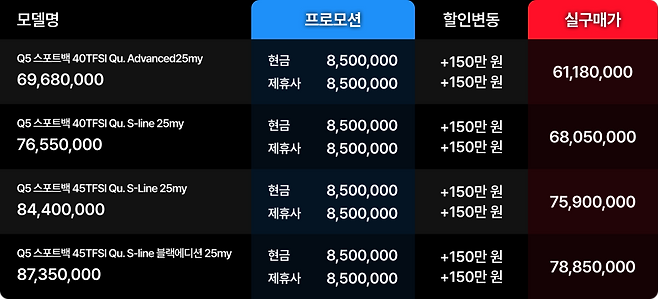 ● Q5는 5천만 원대, Q7·Q8은 대형 할인 확대…아우디 SUV 라인업 실구매가 경쟁력 부각