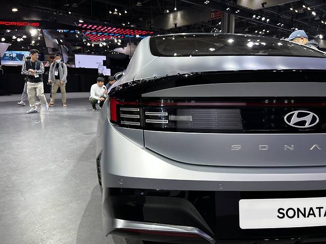 현대자동차는 31일 경기도 일산 킨텍스(KINTEX)에서 개막한 2023 서울 모빌리티쇼에서 풀체인지급 부분변경 모델인 '쏘나타 디 엣지'를 최초로 공개했다.