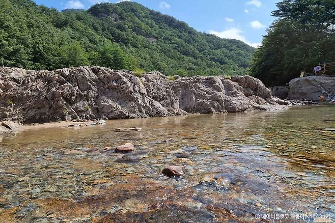 백담계곡이라는 이름은 ‘100개의 담(소)’이 있다는 데서 유래했습니다. 실제로 조약돌과 암반 사이로 맑은 물이 흘러 고여 생긴 크고 작은 소들이 줄지어 이어져 있습니다. 깊지 않아 발을 담그기에도 부담 없는 얕은 수심과 울창한 숲, 부드러운 산세가 어우러져 한 폭의 산수화를 연상케 하죠.
