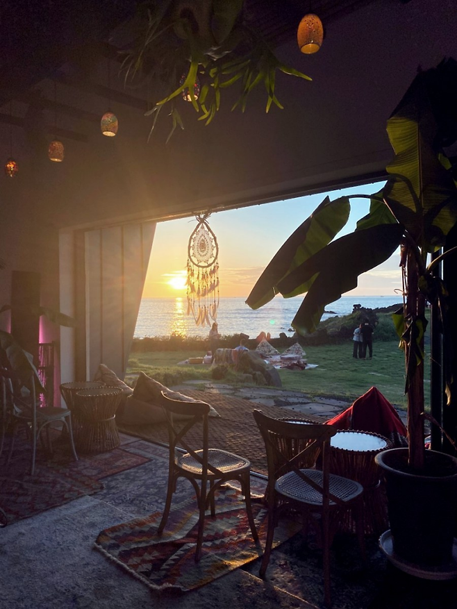 모알보알은 SNS에서 한 번쯤은 보셨을 법한 발리 감성의 카페로, 노을 맛집으로도 유명합니다. 이국적인 보헤미안 스타일의 인테리어와 조용한 분위기가 특징이며, 실내외에 다양한 포토존이 마련되어 있어 사진 찍기에도 좋습니다. 특히 노을이 질 때의 풍경이 아름다워 많은 방문객들이 저녁 시간을 노려 방문합니다.