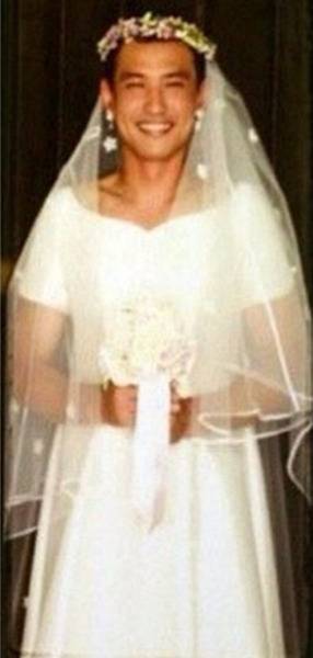 결혼식 당일, 황정민은 평소 장난기 넘치는 성격답게 웨딩드레스를 입고 사진을 찍었다.