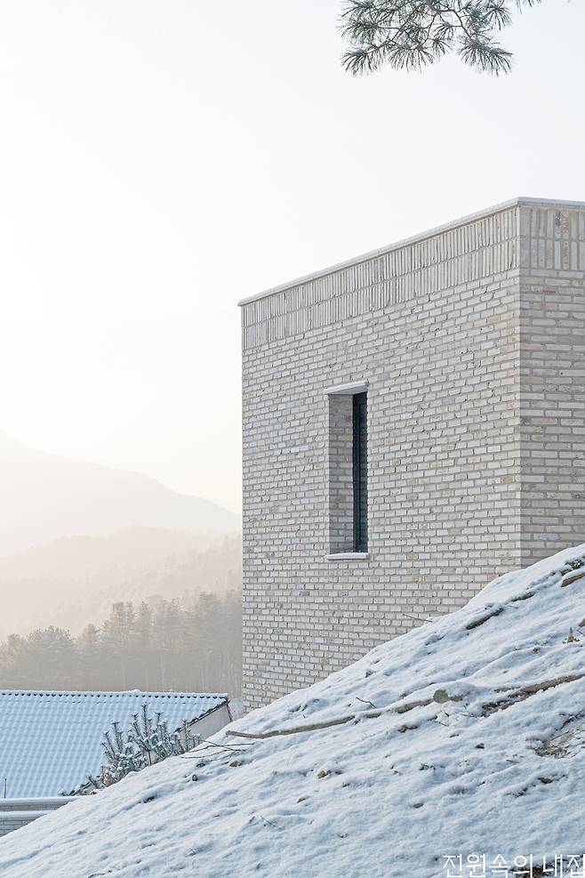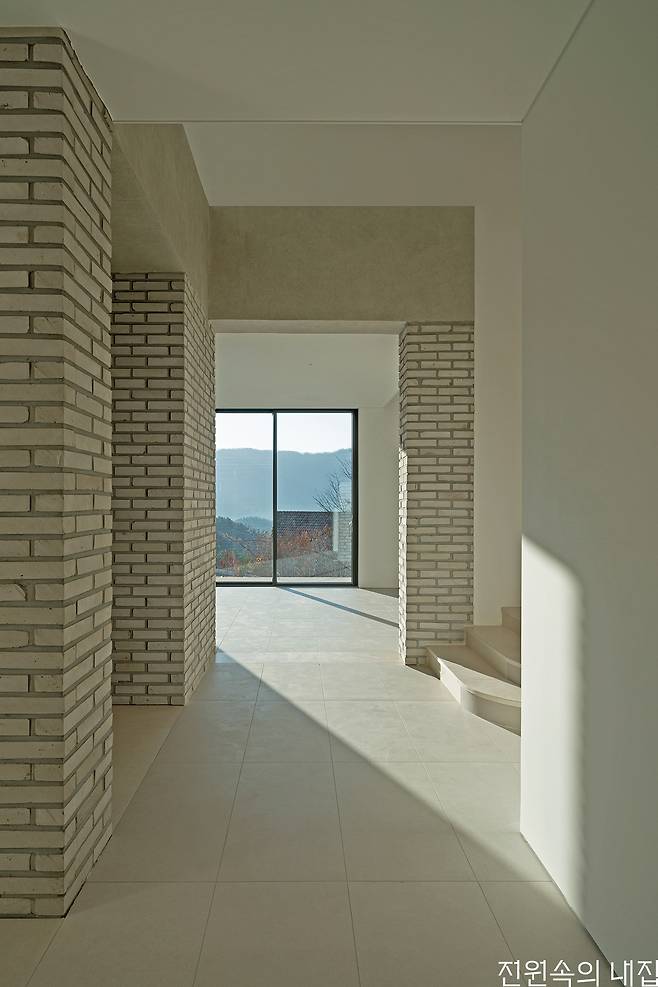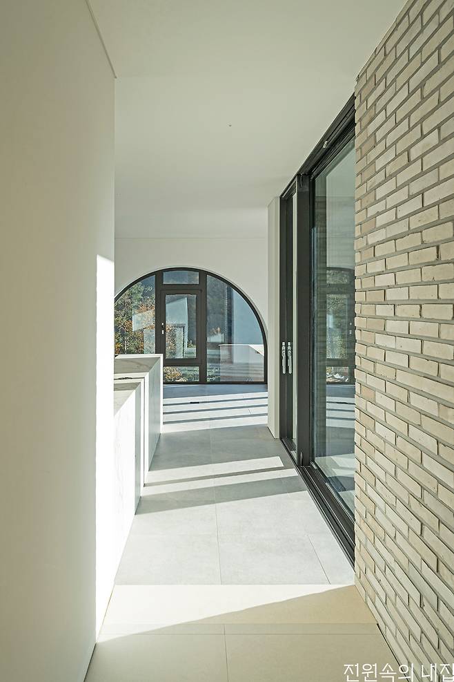 멀리 펼쳐지는 산줄기를 바라보는 땅에 건축주는 고전적이면서 현대적인 감각의 호텔 겸 집을 꿈꿨다. 땅에 순응하며 현명하게 지은 집에 건축주는 일상과 취향을 채워 집을 완성한다.