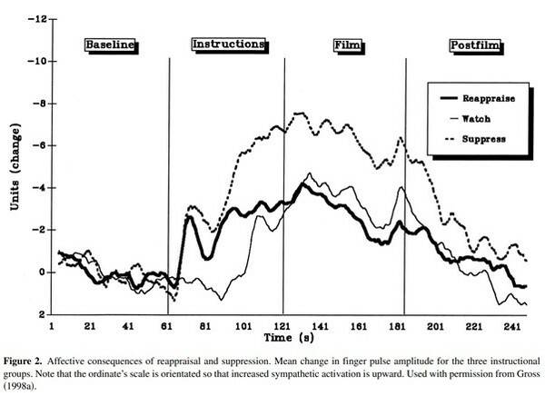 이러한 반응은 다른 비슷한 여러 가지 실험에서도 마찬가지로 나타났습니다. 억제는 부정적 감정을 숨기기만 할 뿐 신체적, 심리적 반응을 오히려 더 증폭시켰습니다.
