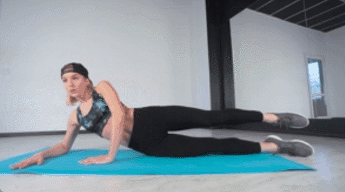 매트에 등을 대고 누워 손을 머리 뒤로 두고 다리를 공중에 들어 무릎을 살짝 구부립니다. 왼쪽 다리를 앞으로 뻗으면서 상체를 틀어 왼쪽 팔꿈치를 오른쪽 무릎 쪽으로 가까이 가져갑니다. 원래 자세로 돌아온 뒤 방향을 바꿔 같은 방식으로 반복합니다.