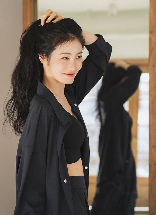 공개한 사진에서 신예은은 긴 웨이브 헤어 스타일에 탄탄한 복근이 드러난 블랙 컬러의 브라톱과 롱 플리츠 스커트를 입고 블랙 셔츠를 매치한 올 블랙 스타일로 소녀에서 숙녀미로 변신한 여성미를 드러냈다.