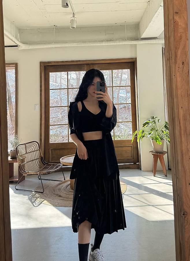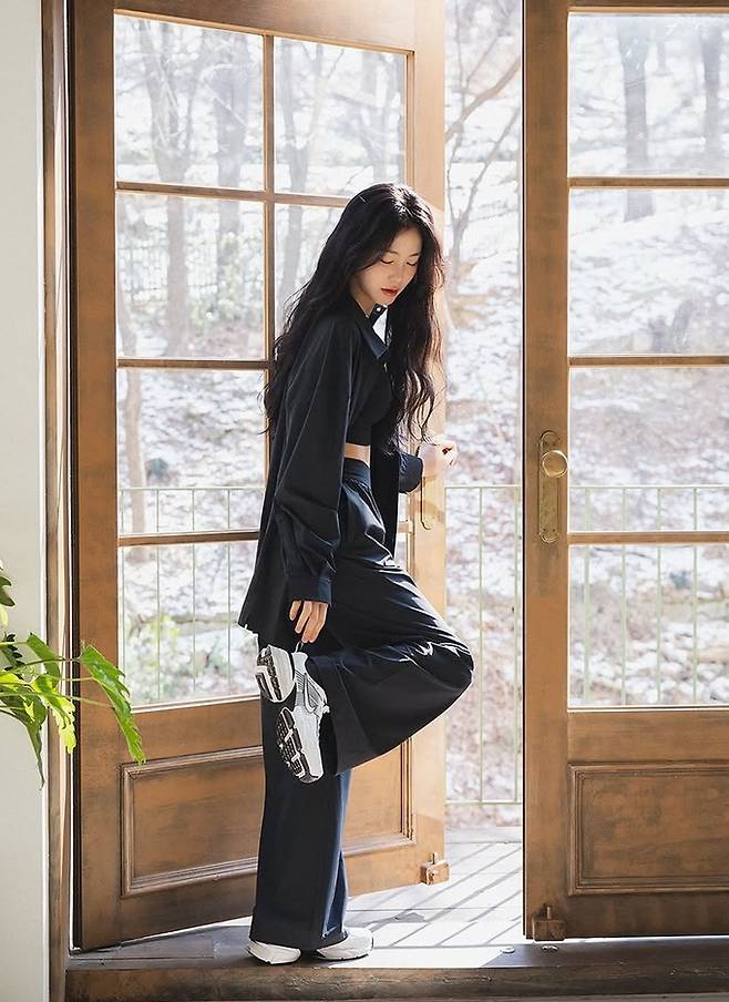 배우 신예은이 복근이 노출된 Y2K 블랙 데일리룩으로 한층 성숙해진 여성미를 물씬 풍겼다.