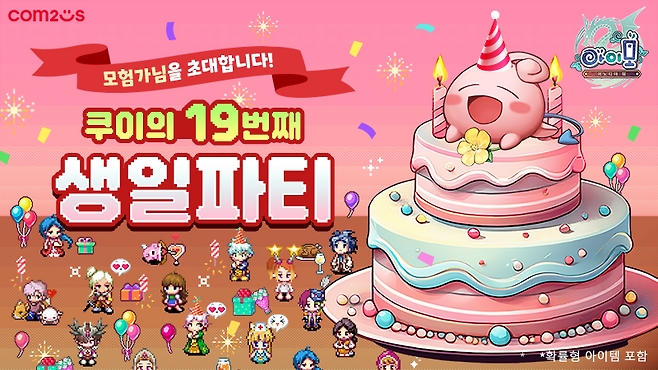 이번 19주년을 기념해 ‘아이모’에서 5월 15일까지 ‘쿠이의 19번째 생일파티’ 이벤트가 진행된다. 우선 몬스터를 사냥하면 얻을 수 있는 ‘쿠이의 마음’을 우디워디 마을 NPC쿠피드에게 전달하면 ‘19주년 쿠이의 마음 코스튬’ 6종과 함께 이벤트 도감에 등록할 수 있는 기념 토큰 등을 받을 수 있다. ‘쿠이의 마음’을 NPC ‘나탈리’에게 전달하면 1시간 동안 경험치 10% 추가 효과도 누릴 수 있다.