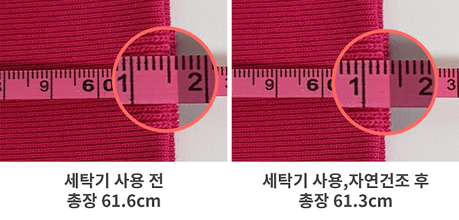 더 많이 줄어들 수밖에 없는 순면 소재나 울 신축성 소재도 2회째 건조에는 줄어들지 않거나 0.5cm 미만으로 수축하는 정도였습니다.
