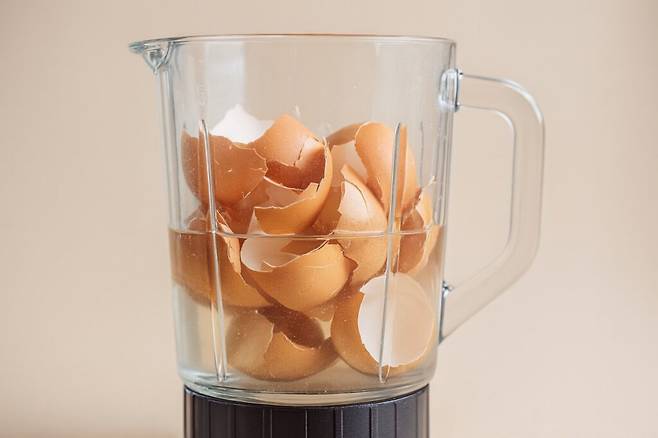 달걀 껍데기의 활용은 여기서 끝나지 않는다. 복잡한 구조로 손이 잘 닿지 않는 병 안쪽이나 믹서기 날 뒷부분처럼 세척이 어려운 곳에도 껍데기가 요긴하다.