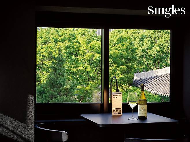 낮에는 예약제 공유 서재, 저녁에는 프라이빗한 와인 페어링 공간으로 운영되는 마이시크릿덴. 덕수궁과 덕수궁 돌담길이 눈앞에 펼쳐지는 이곳을 여름날 가장 잘 누릴 수 있는 시간대는 노을부터 파란 밤하늘까지 볼 수 있는 저녁 7시. 초여름밤을 만끽하기 위해 이곳에서 맛볼 수 있는 와인은 뉴질랜드 말보로 지역에서 생산되는 헌터스, 소비뇽 블랑이다. 레몬, 오렌지, 자몽 등 감귤류 향의 상큼한 풍미, 파워풀하고 풍성한 볼륨감과 시원한 청량감이 더해진 맛을 느낄 수 있다.