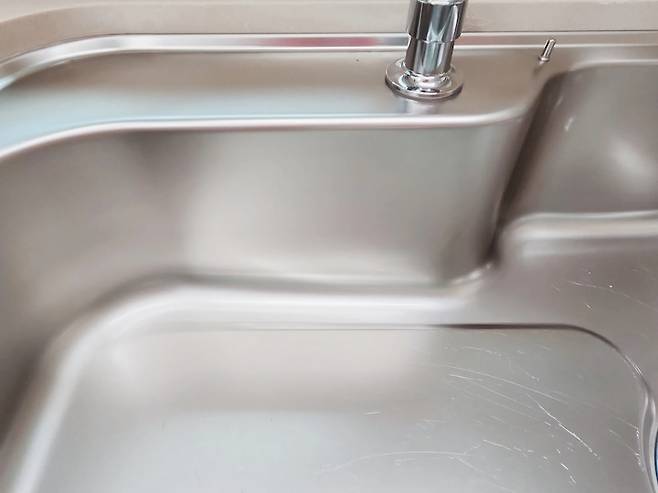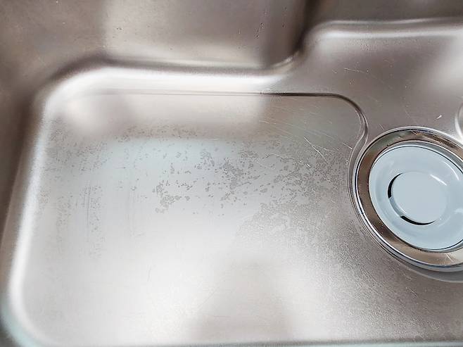 신축이라 물이 안 좋은 건지... 이렇게 얼룩이 많이 졌어요. 심지어 마른행주로 닦은 건데도 저렇게 얼룩이 남아서 골치 아파서 코팅을 시작했어요.