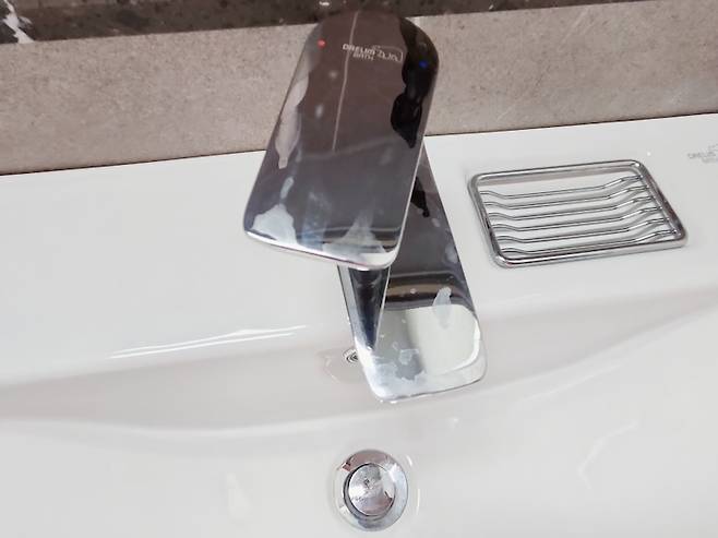 수전도 닦아주고 세면대까지 다 도포해 주었어요.