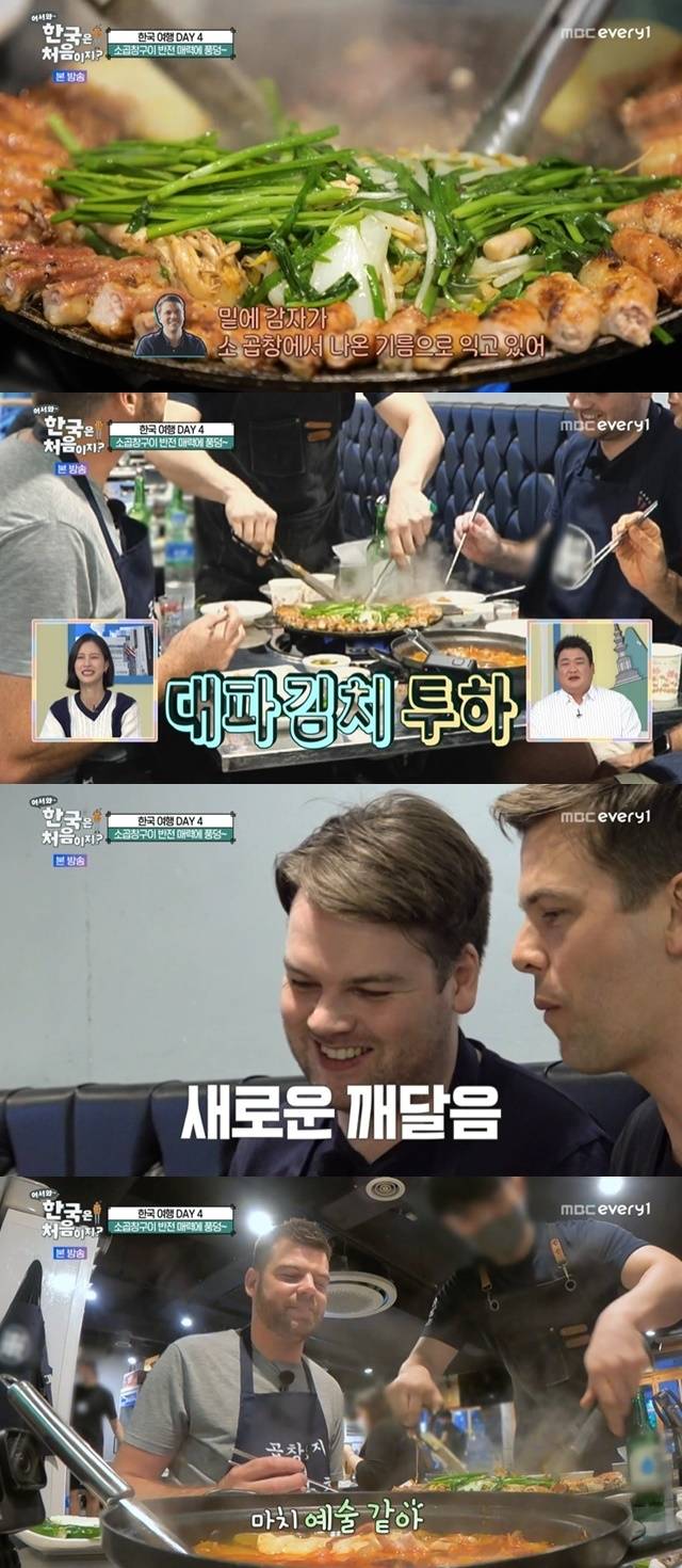 화룡점정은 불판에 올라간 대파김치였다. 형제들은 직원의 빠른 손놀림에 감탄하며 "마치 예술 같다"고 말했다. 이후 세 사람은 잘 익은 소곱창구이에 소주를 곁들여 폭풍 먹방을 선보였다.
