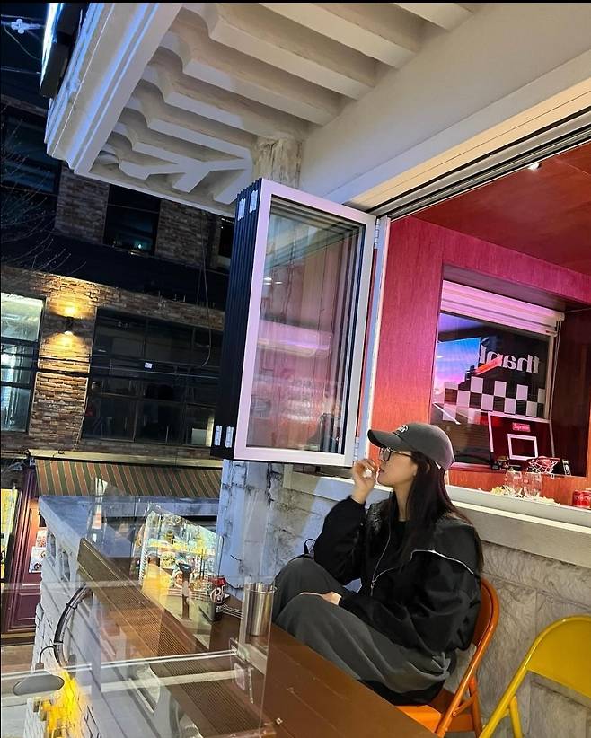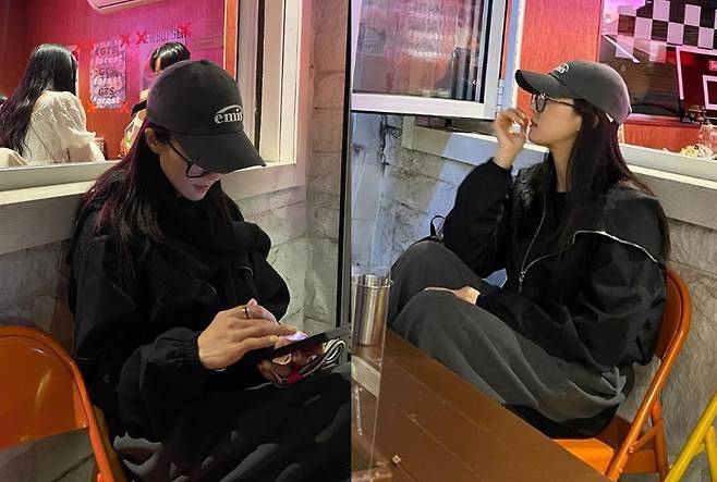 또, 왕빛나는 회색 조거 팬츠를 착용해 힙하고 캐주얼한 코디를 완성했습니다.