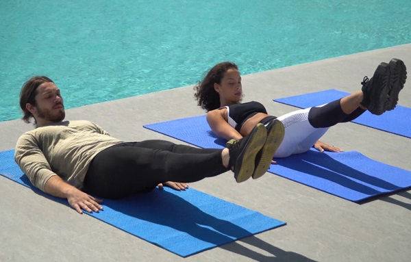 효과 - 하복부와 복직근을 효과적으로 단련합니다. 허벅지와 둔근을 사용하여 하체 근육을 활성화합니다. 빠르게 진행하면 심박수를 올려 지방 연소에 도움이 됩니다.