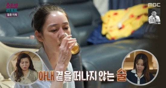 아내는 결혼 후 삶이 달라졌다고 토로했고 부부가 함께 차린 일식집에서 일을 하는 중에도 틈틈이 술을 마시는 모습을 보였습니다. 남편은 아내가 술을 너무 좋아하고 일주일에 술을 30병 정도 마신다고 밝혀 MC들을 충격에 젖게 했습니다.