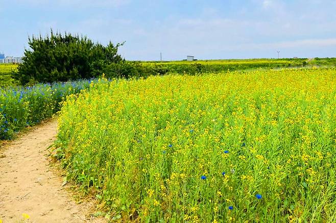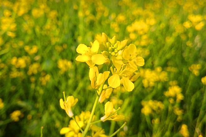 노란 유채꽃이 활짝 핀 들판을 걷다 보면 어느새 마음까지 환해집니다.