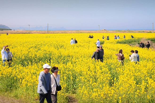유채꽃이 한창인 지금, 이곳은 연일 수많은 관광객의 발길로 붐비며 새로운 봄철 명소로 급부상하고 있습니다.