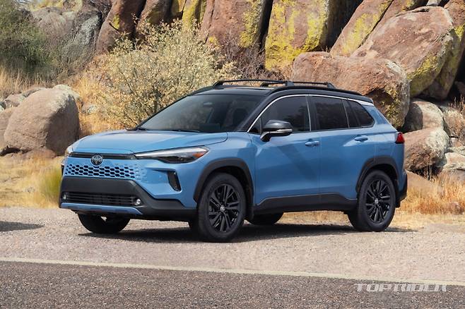 신형 코롤라 크로스는 외관 디자인이 소폭 변경됐다. 전면부에는 날렵하게 디자인된 주간주행등이 추가된 헤드램프가 적용됐는데, 하이브리드의 경우 새로운 전면부 그릴까지 제공한다. 다크 그레이 혹은 글로스 블랙 컬러 중 선택이 가능한 18인치 휠이 탑재됐다.