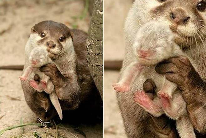 SNS상에는 갓 태어난 아기 수달을 손으로 꼭 쥔 상태에서 들고 서있는 엄마 수달의 모습이 담긴 사진이 공개가 된 것.