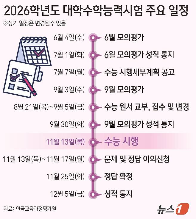 [그래픽] 2026학년도 대학수학능력시험 주요 일정