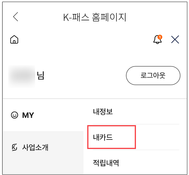 이제 K-패스 홈페이지에 등록만 하면 모든 과정이 끝난다. K-패스 홈페이지에서 로그인을 한 뒤 최상단에 위치한 MY 메뉴에서 '내카드'로 들어가면 K-패스 카드 등록이 가능하다.