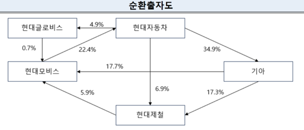 16일 공정거래위원회에 따르면 현대차그룹은 지난해 5월 기준 4개의 순환출자 고리를 보유하고 있다. 대표적 순환출자 고리는 현대모비스→현대차→기아→현대모비스로 이어지는 구조다. 1998년 현대차가 기아의 지분을 매입하고 이듬해 현대모비스가 현대자동차의 지분을 매입하며 순환출자 고리가 형성됐다.