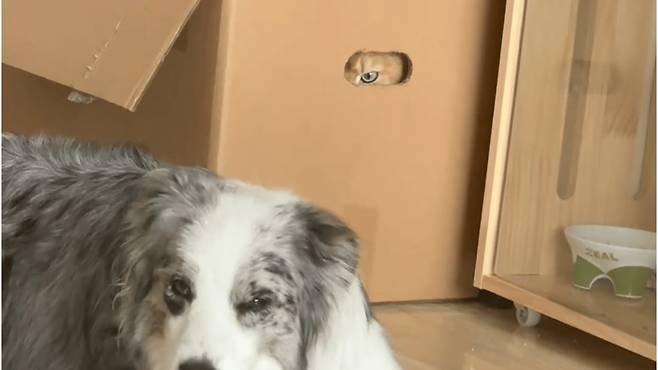 강아지는 자신의 실수를 알았는지 고개를 숙이고 상자 주위를 맴돌았습니다. 이따금 상자 위의 구멍을 올려다보며 미안함과 애교가 담긴 눈빛을 보냈습니다. 하지만 고양이는 쉽게 용서하지 않았습니다. 구멍 안에서 강아지의 모든 움직임을 놓치지 않고 지켜보며, 가끔 불만스러운 '야옹' 소리를 내뱉었습니다.