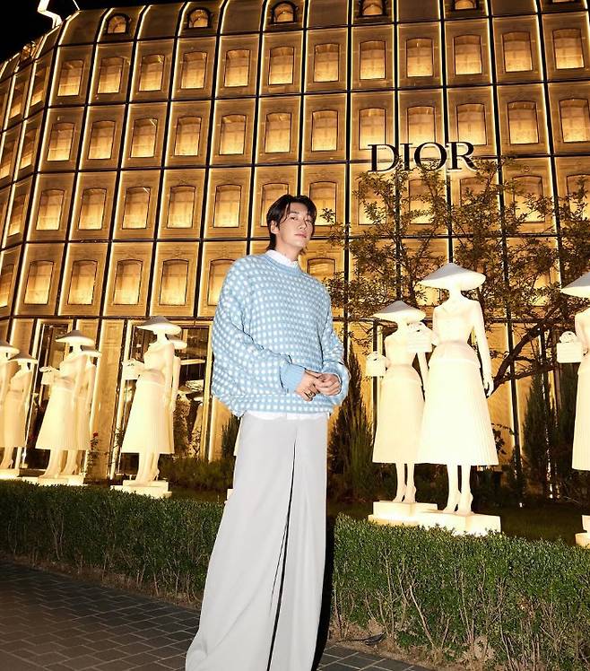 최근 열린 디올 공식 행사에서는 화이트 셔츠에 스카이블루 계열의 니트, 통이 넓은 바지, 웨이브진 헤어스타일로 세련되고 화사한 캐주얼룩을 선보였다.