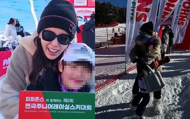 아이스하키 선수로 활동 중인 아들 바로군의 훈련 일정에 맞춰 현지에서 동행 중이며,자연스러운 차림에도 불구하고 여전히 세련된 이미지로 많은 팬들의 관심을 끌고 있다.