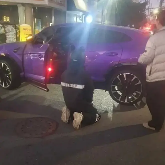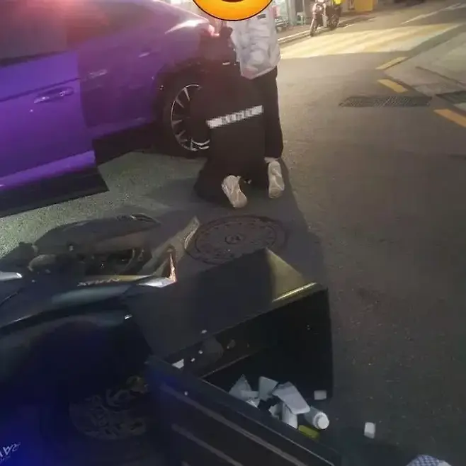 사고 직후 오토바이 운전자는 차량 앞에서 무릎을 꿇고 사죄하는 모습이 포착되었습니다.
