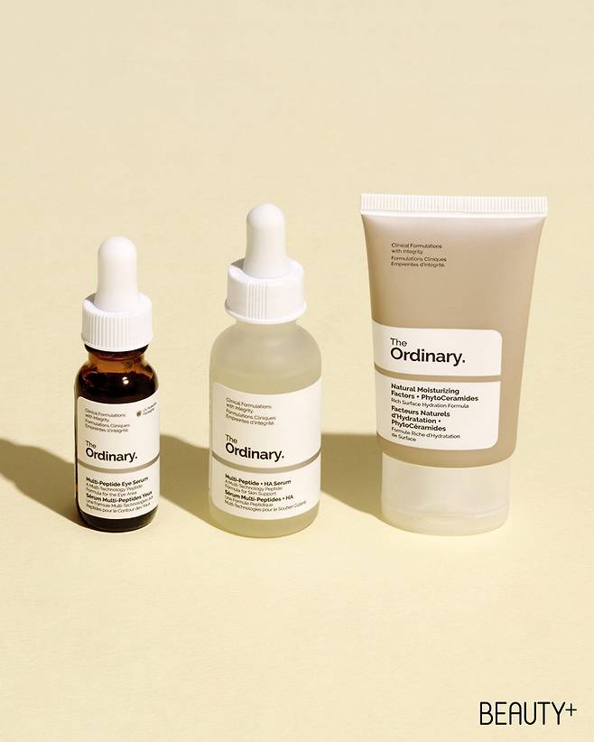 페이스 세럼, 아이 세럼, 모이스처라이저로 구성된 노화 케어에 효과적인 구성. 피부 잔주름과 눈가 주름뿐 아니라, 탄력과 수분 공급에 탁월하다. 멀티-펩타이드+HA세럼 30ml, 멀티-펩타이드 아이 세럼 15ml, 내추럴 모이스처라이징 팩터스+피토세라마이즈 30ml 세트 6만2천2백원.