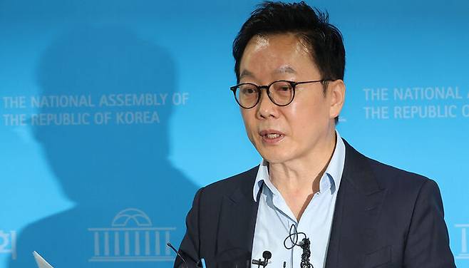 ▲ 더불어민주당 정봉주 최고위원 후보가 12일 오전 국회 소통관에서 기자회견을 열고 이른바 '이재명팔이' 세력에 대한 문제의식과 대응 계획을 밝히고 있다.