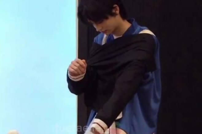 신유가 어깨너비 때문에 팬사인회에서 팬이 가져온 3XL의 상의가 맞지 않고, 4XL 사이즈의 교복 마이를 입었다는 언급이었습니다.